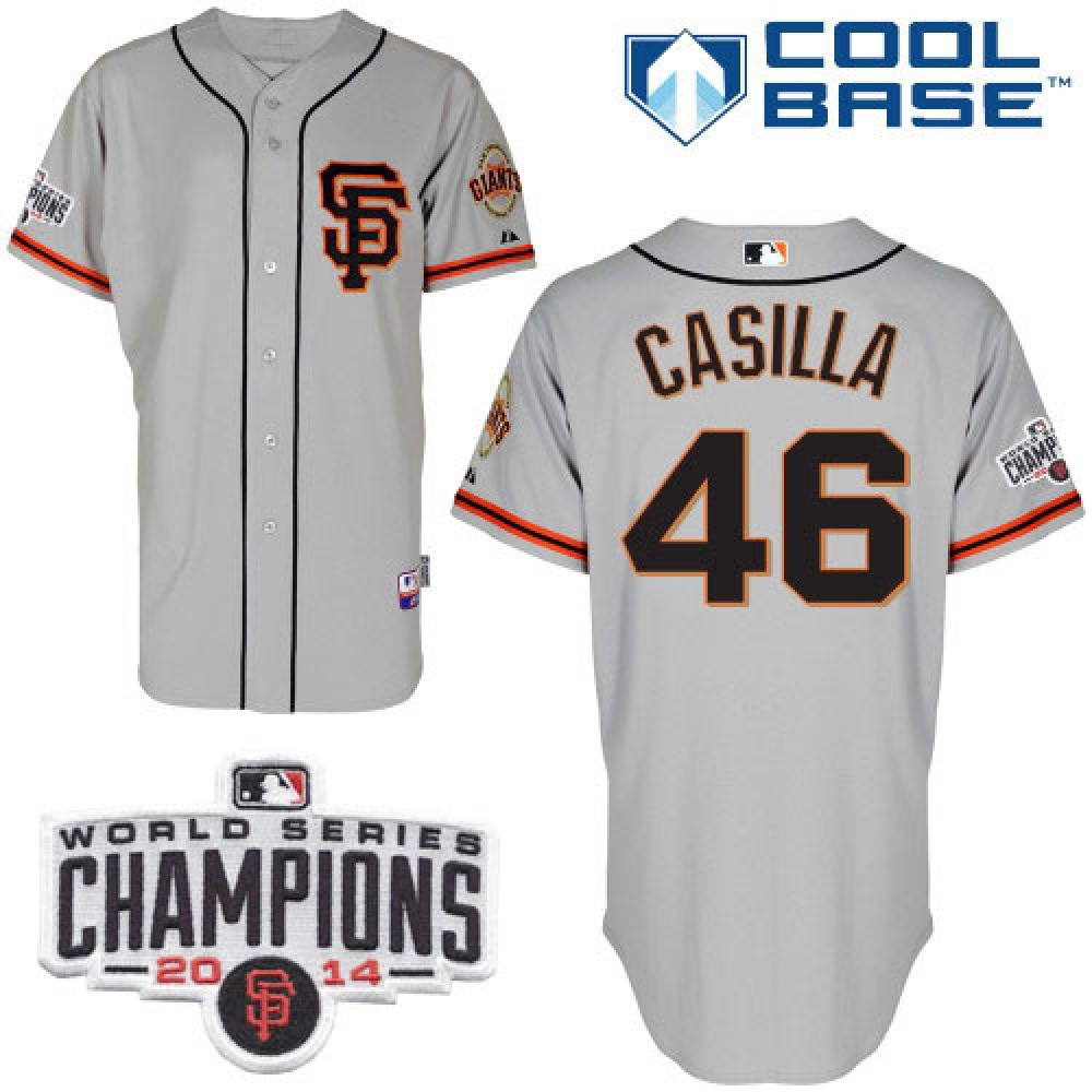 Giants #46 Santiago Casilla Grey Road 2 Cool Base W/2014 World Series Champions Patch Stitched MLB Jersey