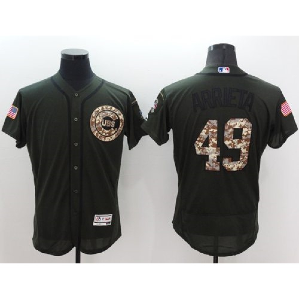 Cubs #49 Jake Arrieta Green Flexbase Authentic Collection Salute to Service Stitched MLB Jersey