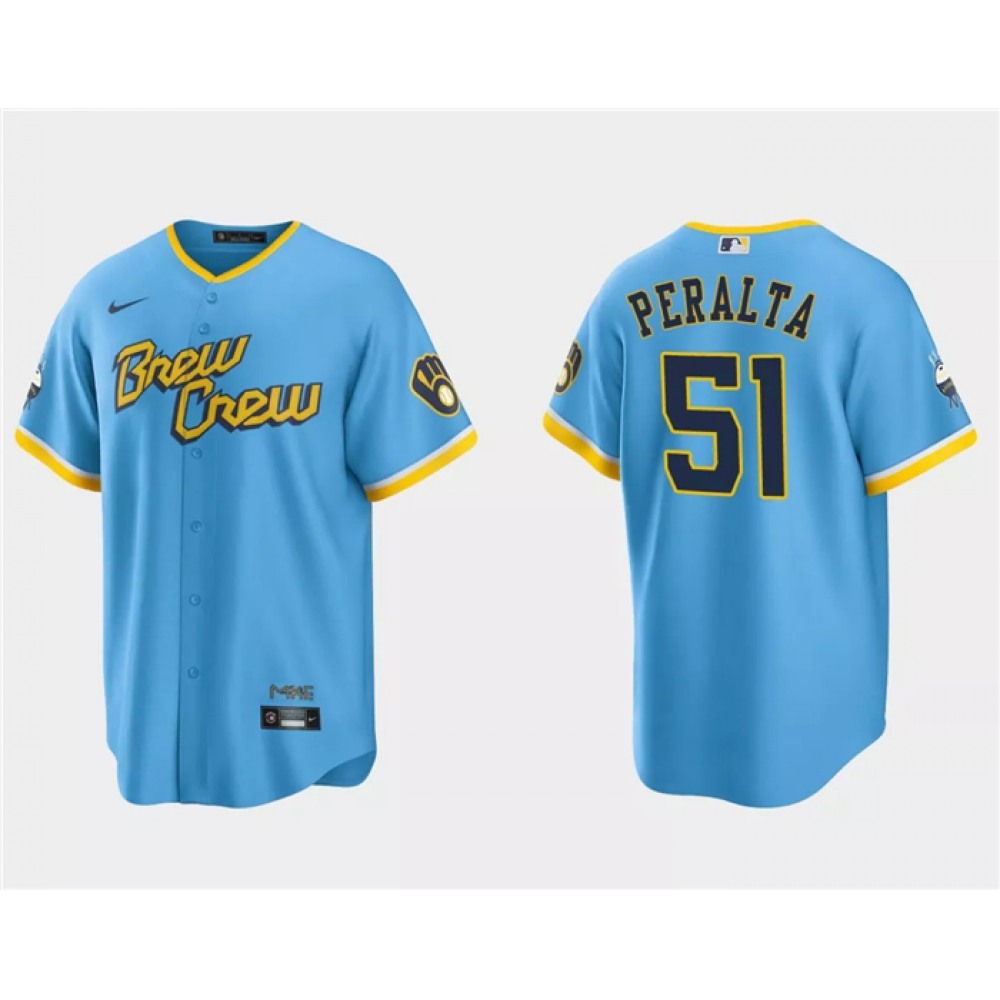 Men's Milwaukee Brewers #51 Freddy Penalta Powder Blue City Connect Cool Base Stitched Jersey