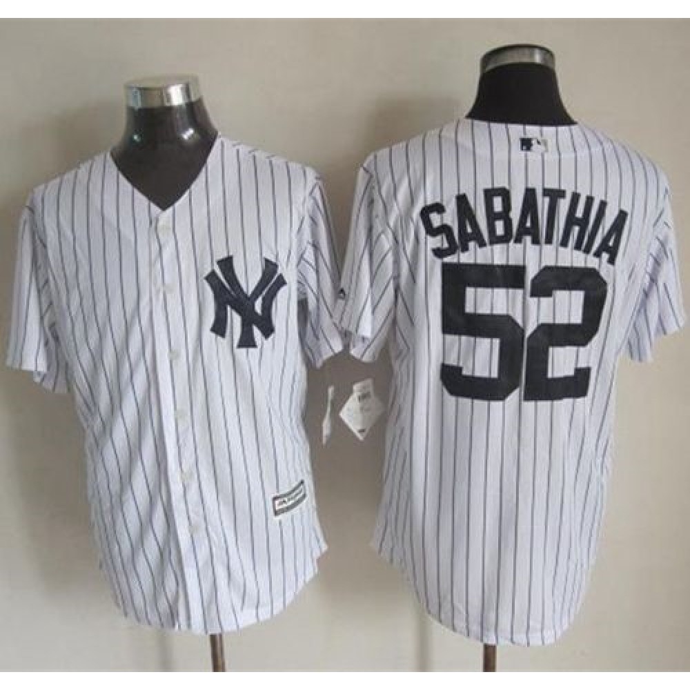 Yankees #52 C.C. Sabathia White Strip New Cool Base Stitched MLB Jersey