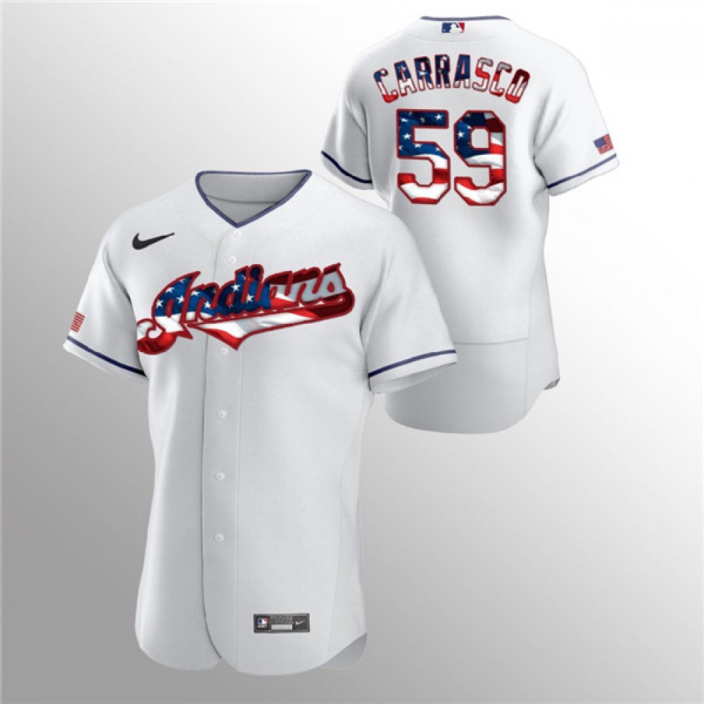 Men's Cleveland indians #59 Carlos Carrasco White 2020 Stars & Stripes Flex Base Stitched Jersey