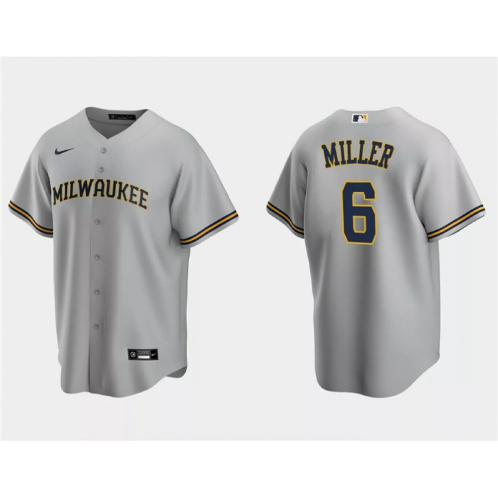Men's Milwaukee Brewers #6 Owen Miller Grey Cool Base Stitched Jersey