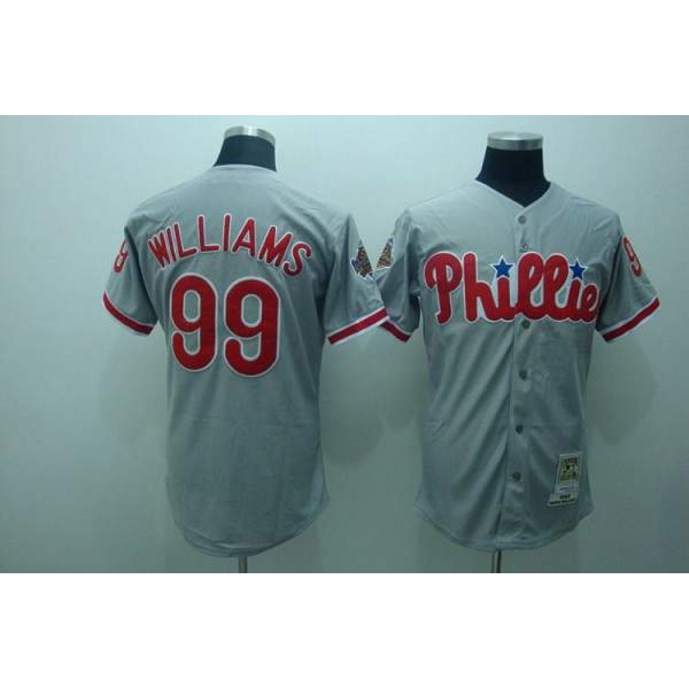 Mitchell and Ness Phillies #99 Mitch Williams Stitched Grey Throwback MLB Jersey