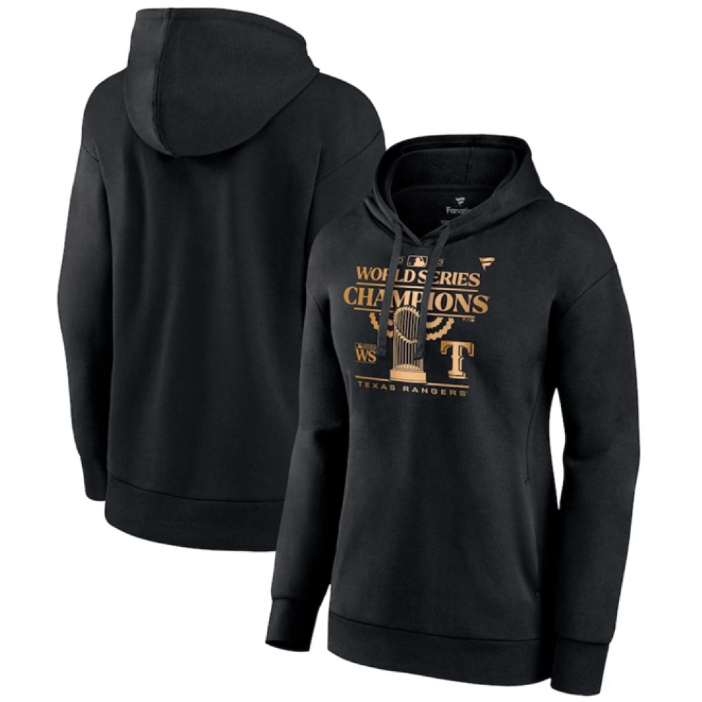 Women's Texas Rangers Black 2023 World Series Champions Parade Pullover Hoodie(Run Small)