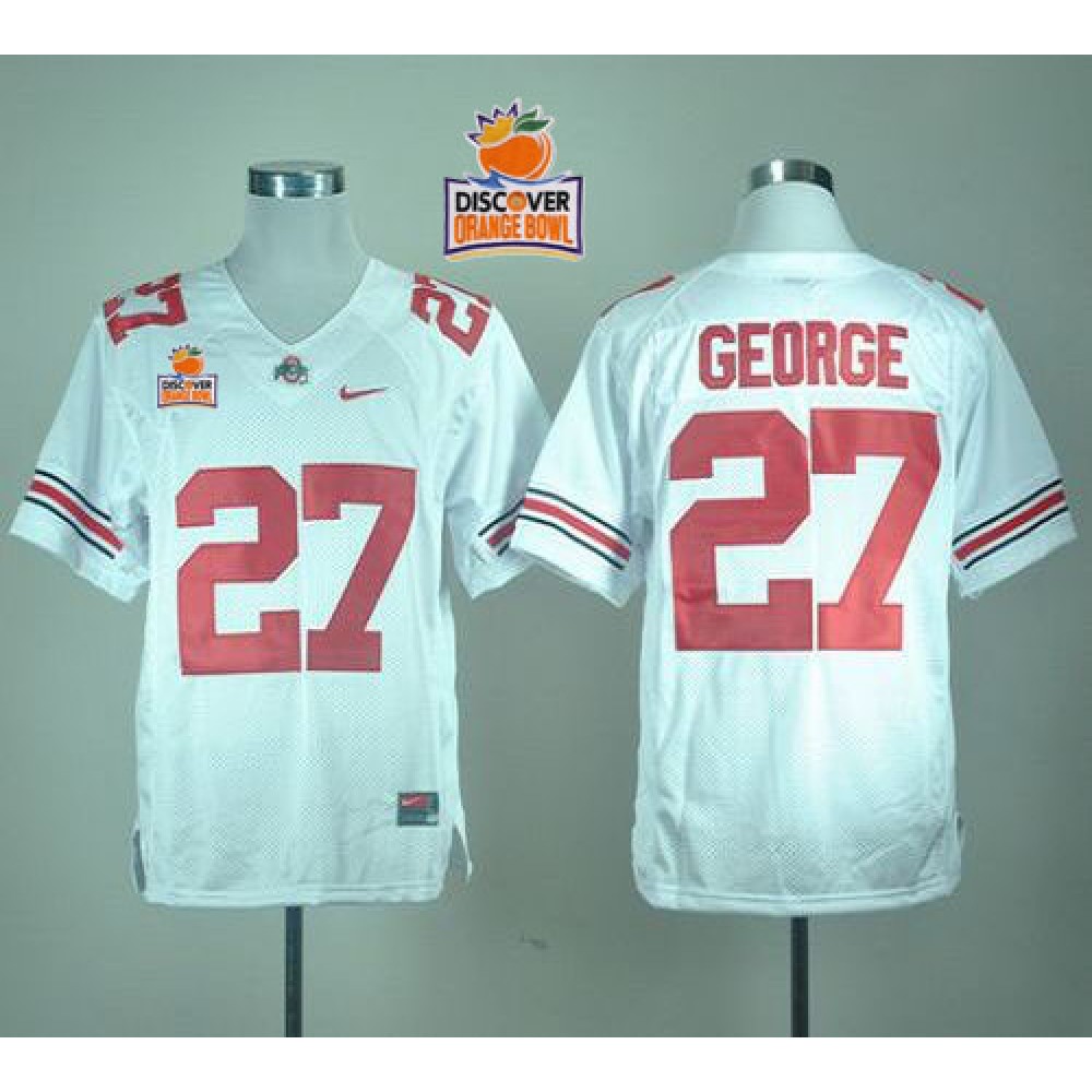 Buckeyes #27 Eddie George White 2014 Discover Orange Bowl Patch Stitched NCAA Jersey