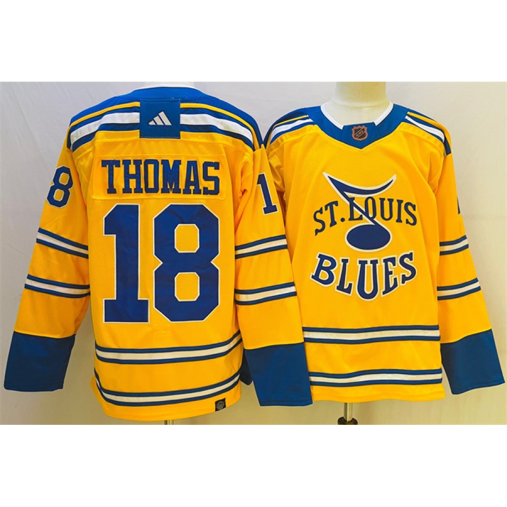 Men's St. Louis Blues #18 Robert Thomas Yellow 2022-23 Reverse Retro Stitched Jersey