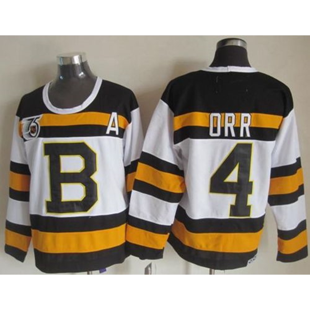Bruins #4 Bobby Orr White CCM Throwback 75TH Stitched NHL Jersey