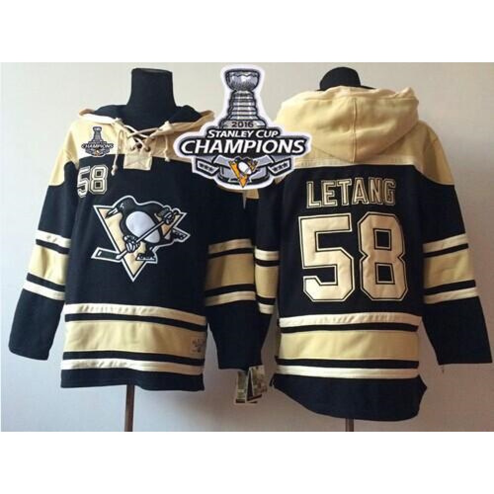 Penguins #58 Kris Letang Black Sawyer Hooded Sweatshirt 2016 Stanley Cup Champions Stitched NHL Jersey