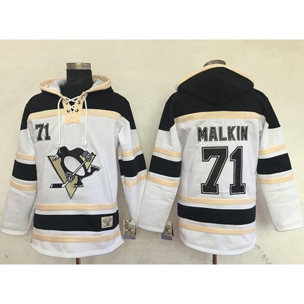 Penguins #71 Evgeni Malkin White Sawyer Hooded Sweatshirt Stitched NHL Jersey