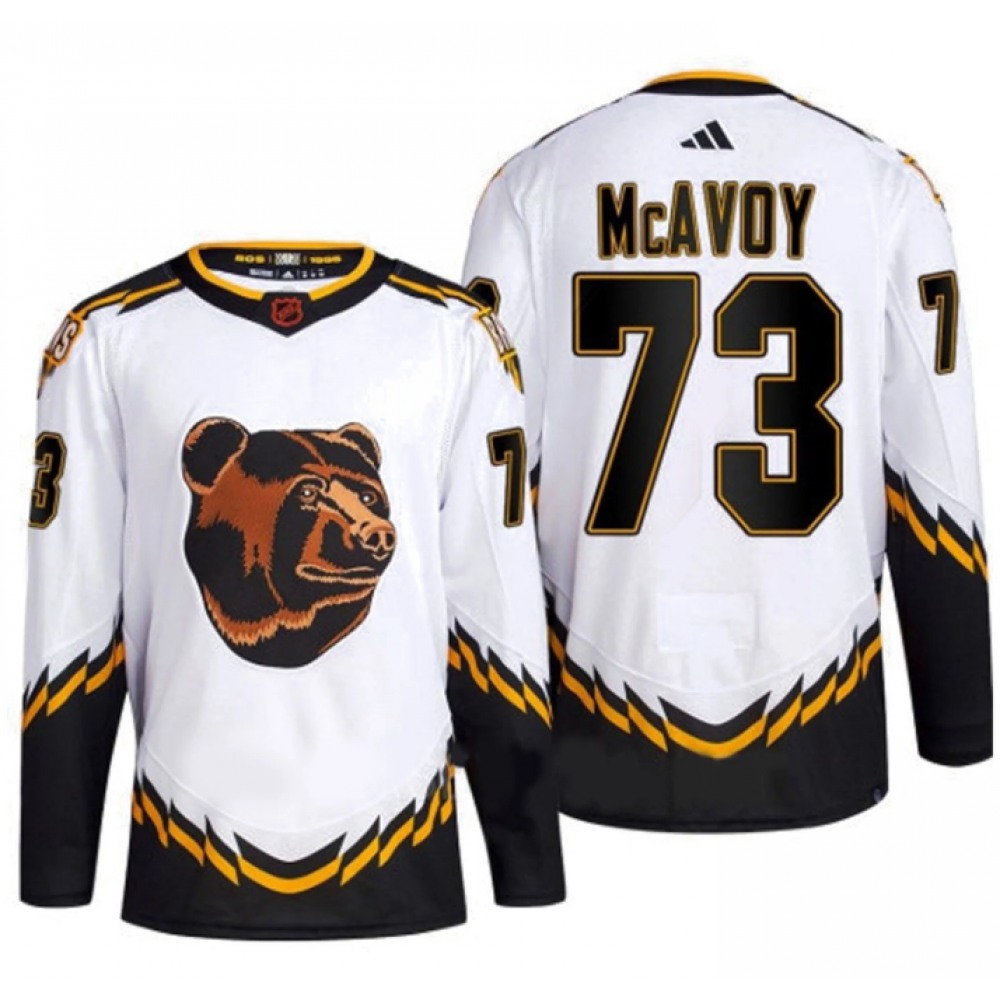 Men's Boston Bruins #73 Charlie McAvoy White 2022-23 Reverse Retro Stitched Jersey