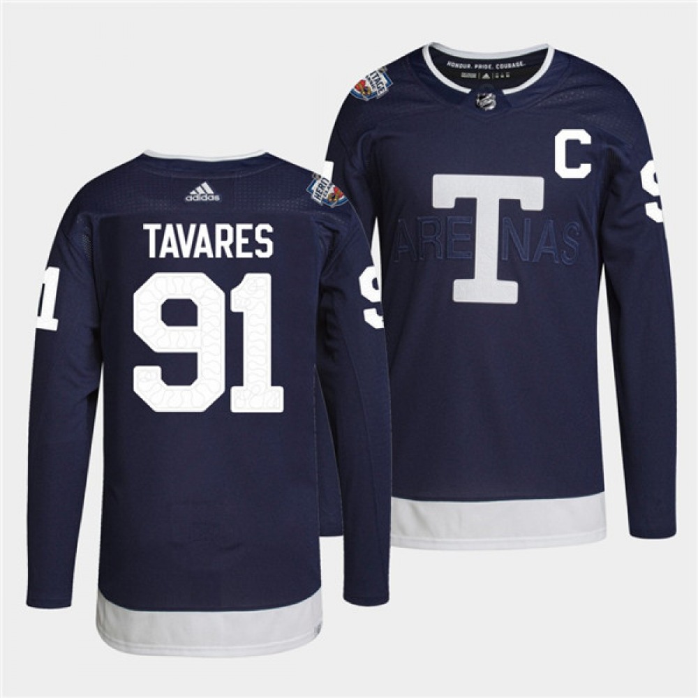 Men's Toronto Maple Leafs #91 John Tavares 2022 Heritage Classic Navy Stitched Jersey