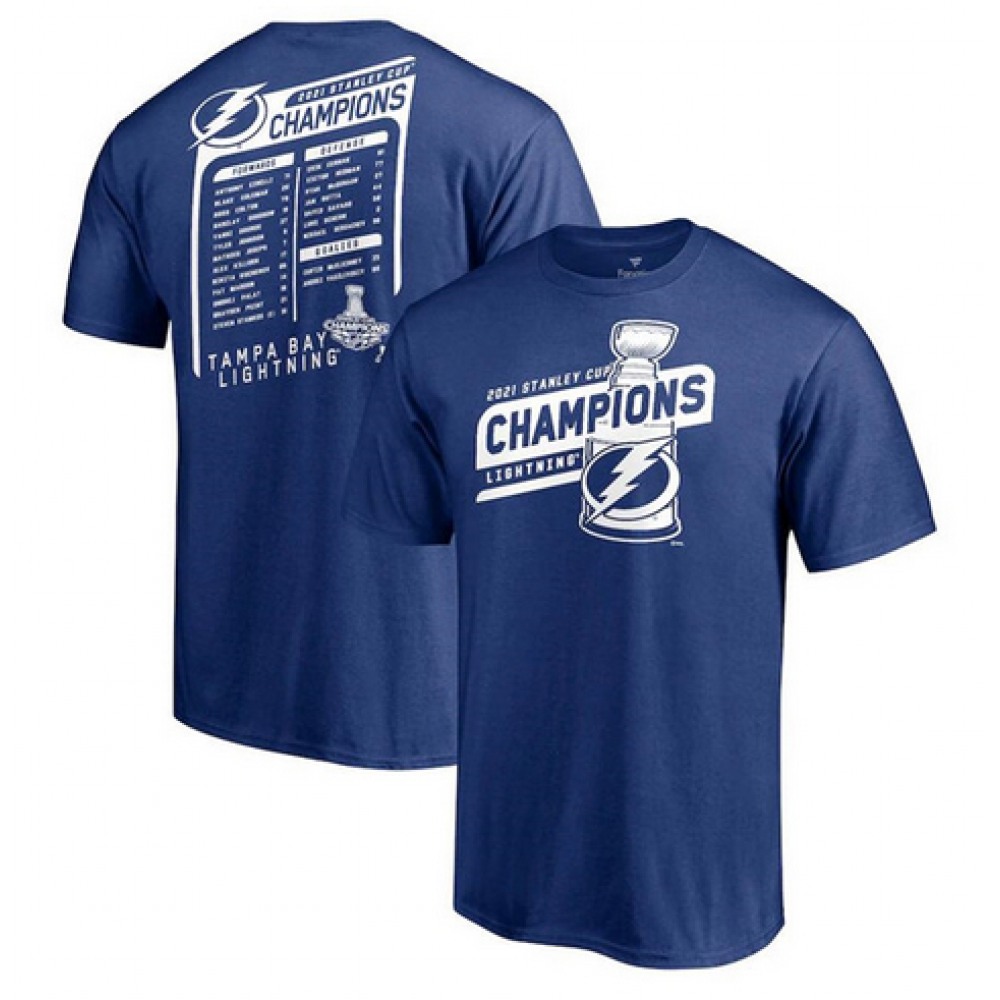 Men's Tampa Bay Lightning 2021 Blue Stanley Cup Champions Pepper Pot T-Shirt