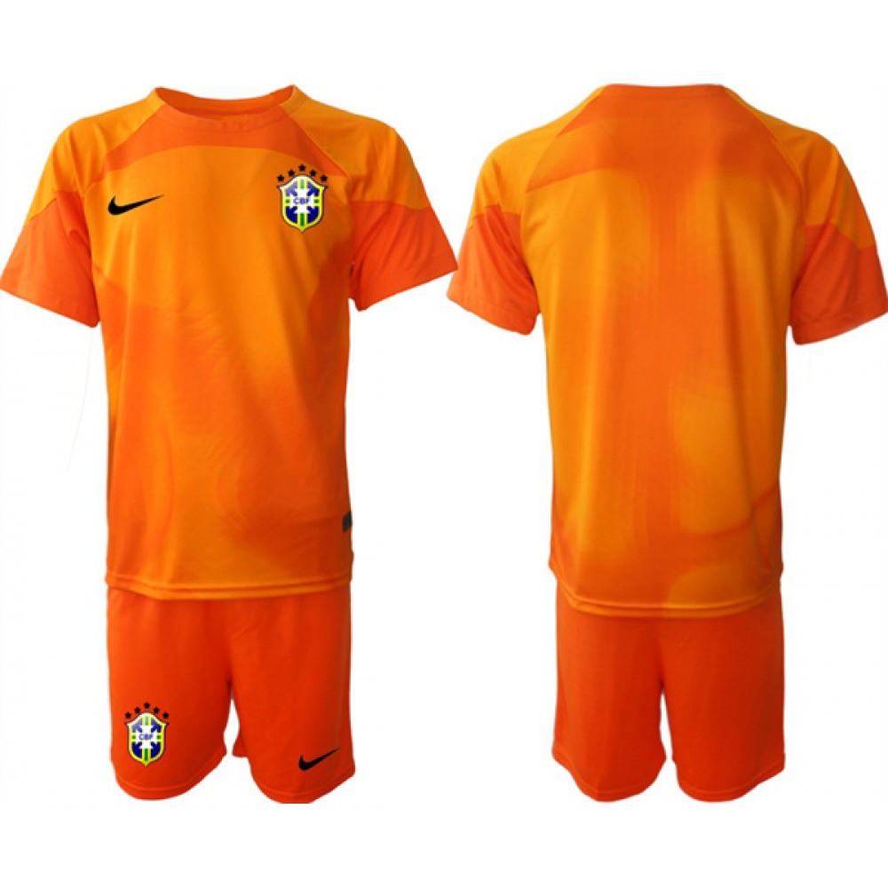 Men's Brazil Orange Goalkeeper2022 FIFA World Cup Soccer Jersey Suit