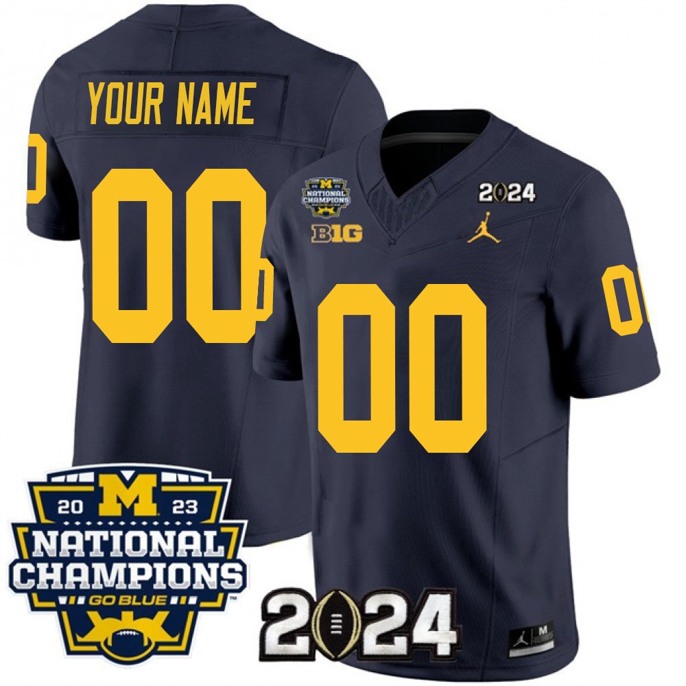 Men's Michigan Wolverines ACTIVE PLAYER Custom Navy 2024 F.U.S.E. With 2023 National Champions Patch Stitched Jersey