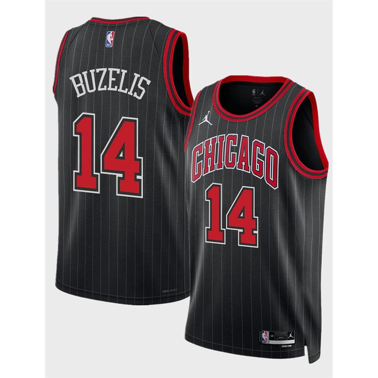 Men's Chicago Bulls #14 Matas Buzelis Black 2024 Draft Statement Edition Stitched Basketball Jersey