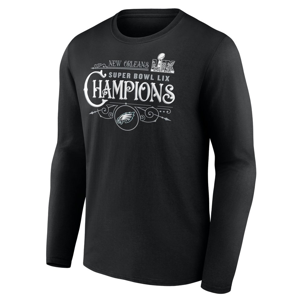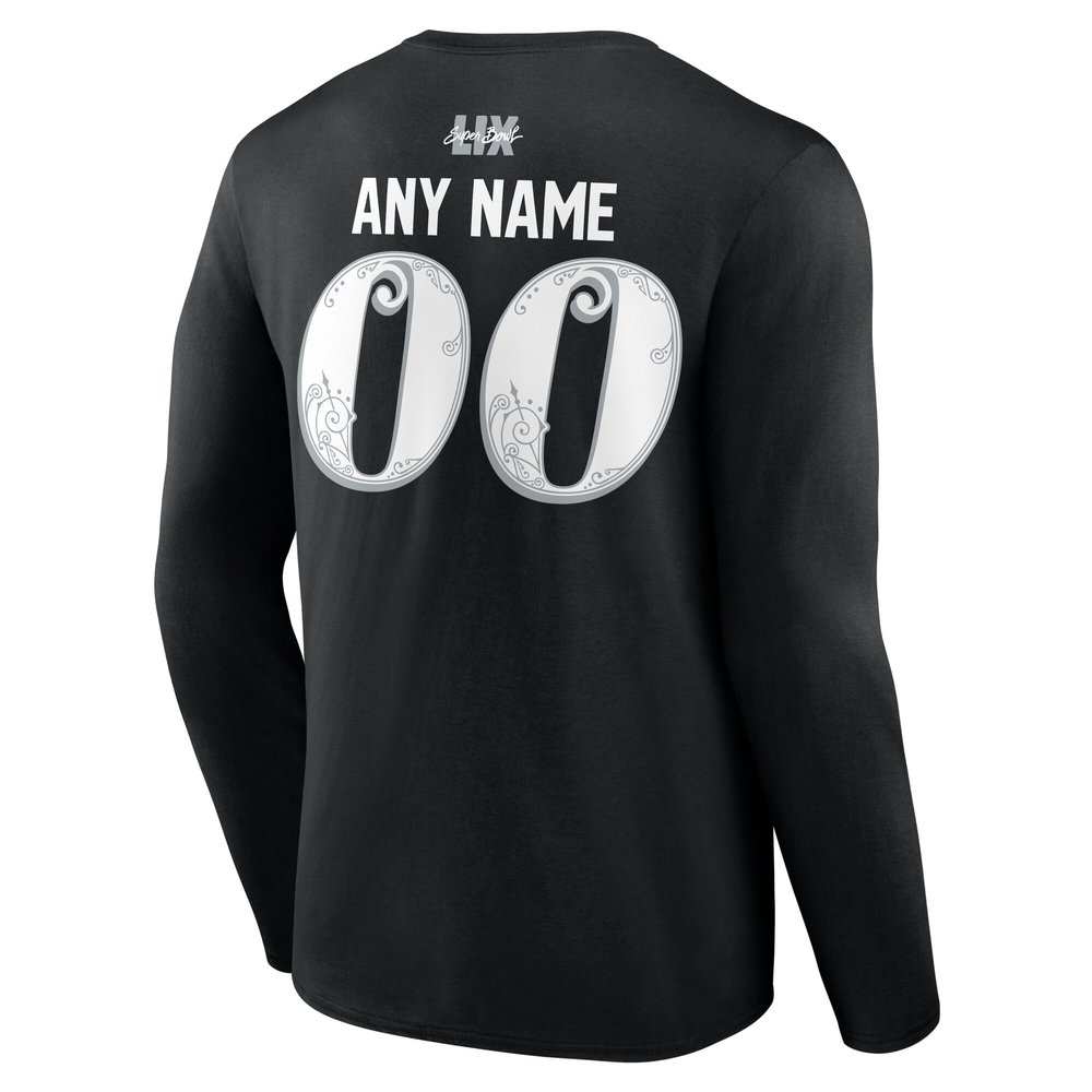 Men's Philadelphia Eagles Black Super Bowl LIX Champions Custom Name & Number Long Sleeve T-Shirt