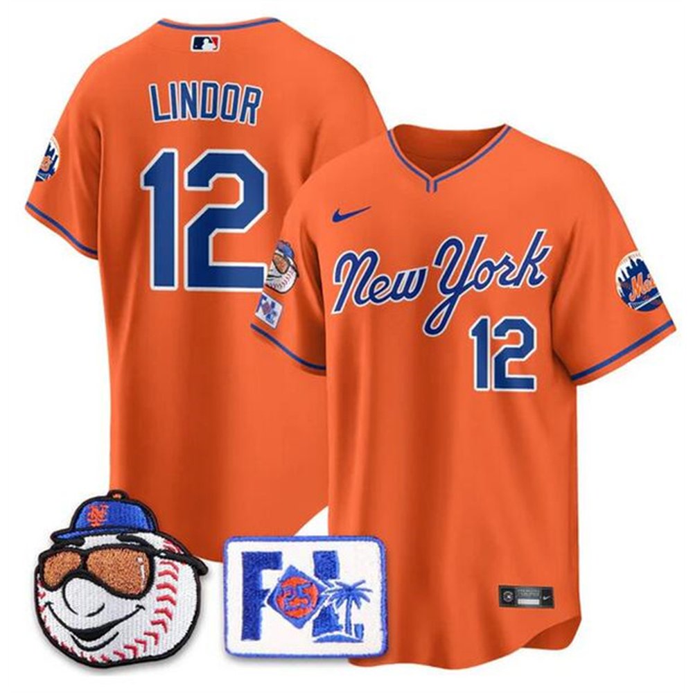 Men's New York Mets #12 Francisco Lindor Orange 2025 Spring Training Stitched Baseball Jersey