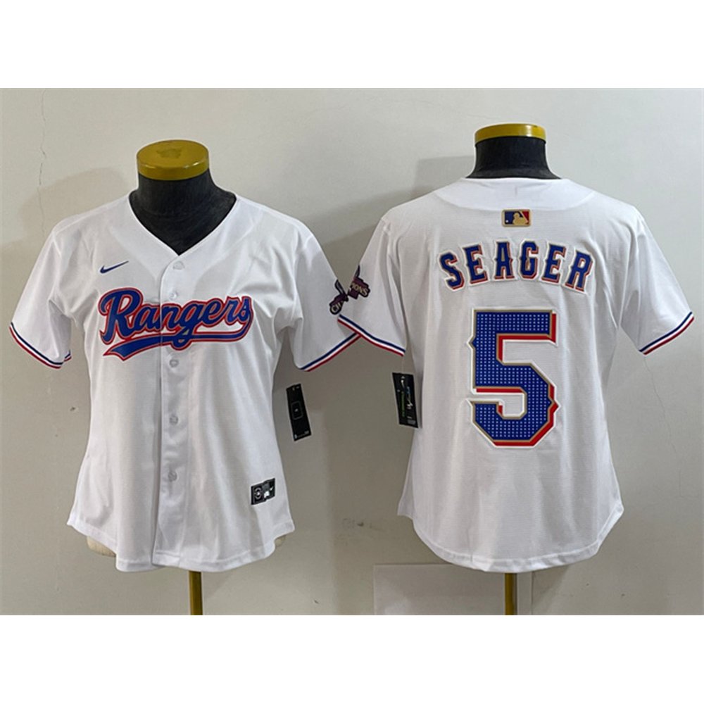 Women's Texas Rangers #5 Corey Seager White Gold Stitched Baseball Jersey(Run Small)
