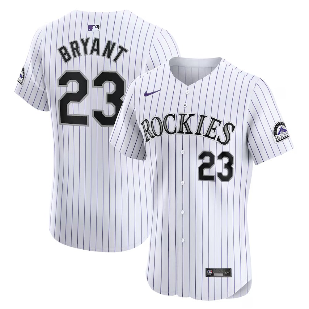Men's Colorado Rockies #23 Kris Bryant Nike White Home Elite Jersey