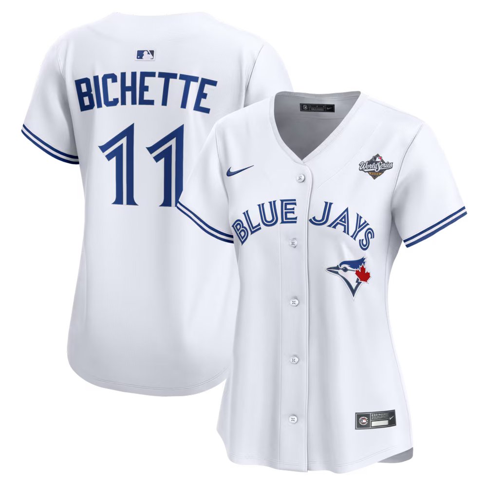 Women's Toronto Blue Jays #11 Bo Bichette Nike White 2025 World Series Home Limited Jersey