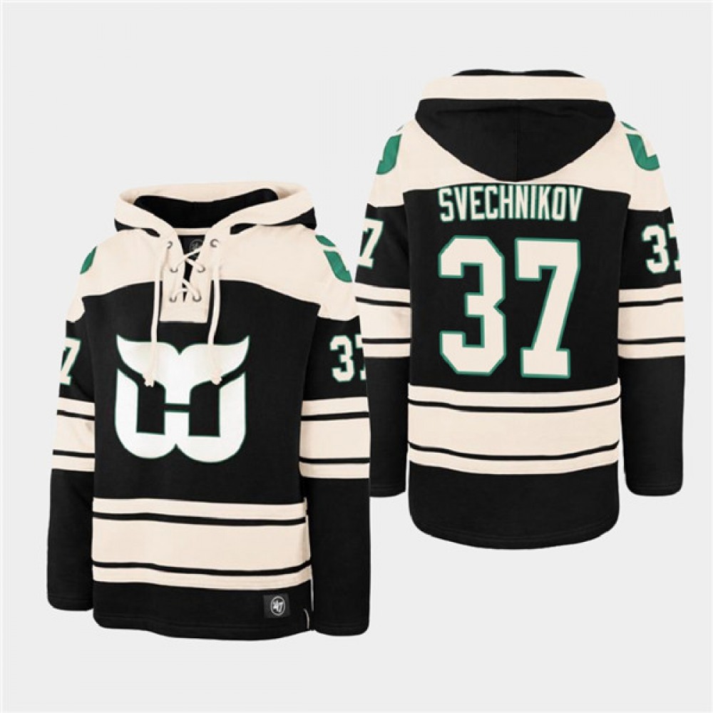 Men's Carolina Hurricanes #37 Andrei Svechnikov Black Ageless Must-Have Lace-Up Pullover Hoodie