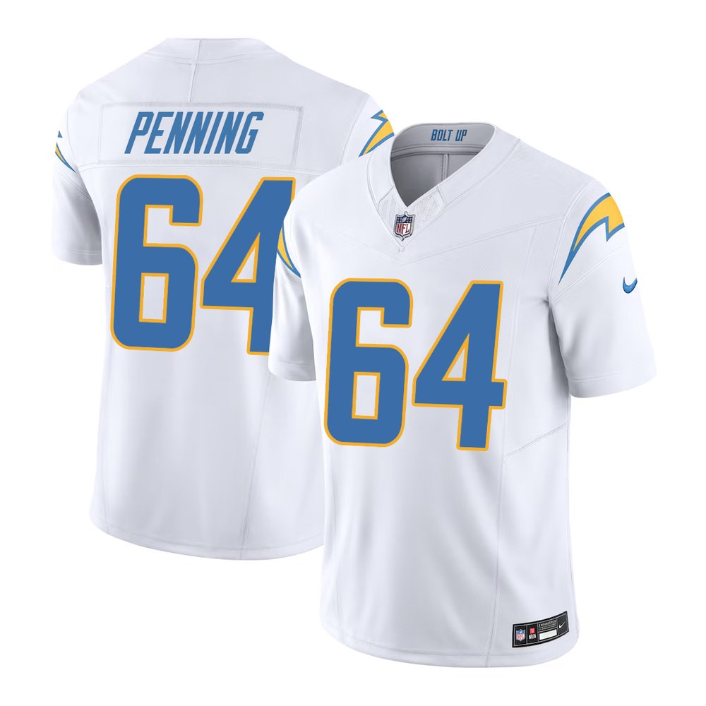 Men's Los Angeles Chargers #64 Trevor Penning Nike White Alternate Charger Power Vapor F.U.S.E. Limited Jersey